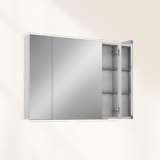 Sunrosa Aluminum Bathroom Medicine Cabinet with Mirror, 36"27.5", Wall-mountable and Recessed-in, 3-door Cabinet Organizer