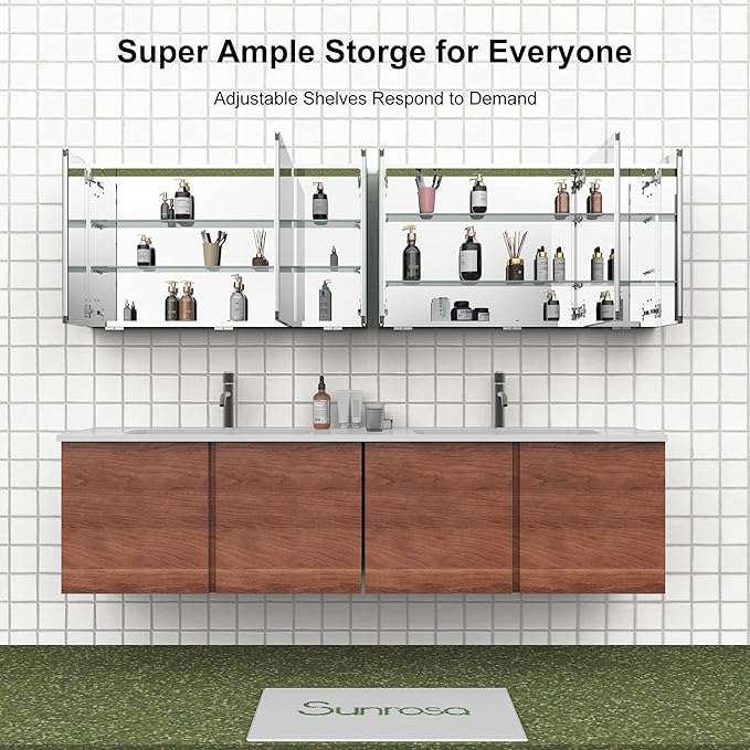 Sunrosa Aluminum Bathroom Medicine Cabinet with Mirror Door, 48" x 27.5", 3-Door Wall-Mounted & Recessed Bathroom Medicine Cabinet Organizer