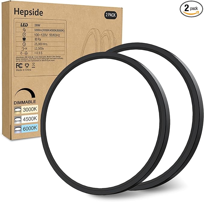 - 【Energy Saving and Stable Lighting Fixture】 Equivalent to a traditional 280W five-bulb, Hepside LED ceiling light only has 28W(3200 lumens) low power consumption, which can save up to 90% on your home electricity bills by replacing your old lighting fixtures . No flicker, no blue light, natural and soft lighting source care for your family.