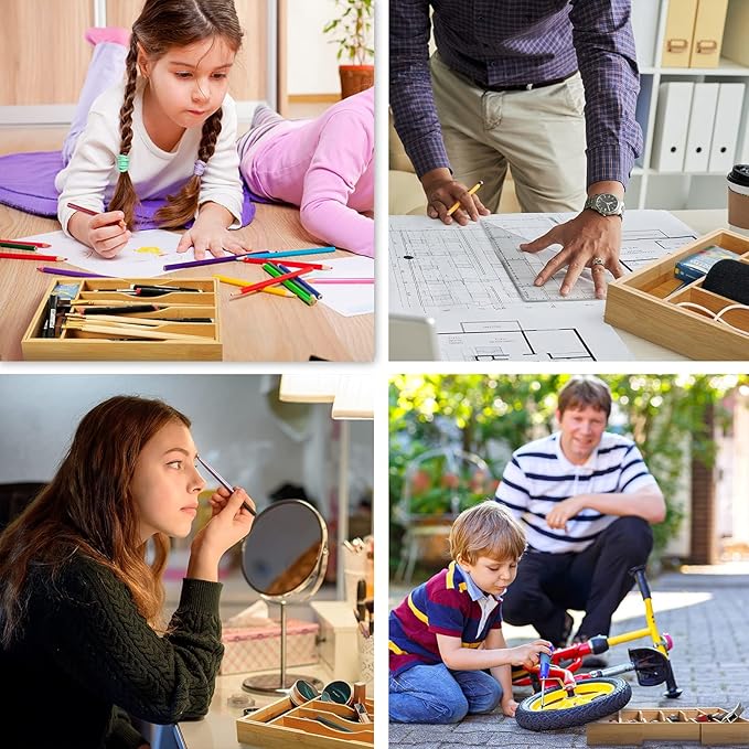 - [BRING AESTHETICS INTO YOUR KITCHEN]: This drawer organizer, crafted with premium natural bamboo, featuring the elegant texture and warm tone, can blend in with most drawer interior and room decor. Besides smooth surface and lines, curve design of slot walls brings a flexible sense of order for convenient access to tools. Versatile decorative organizer for kitchen countertop or drawers in bathroom, bedroom, living room and even home office to store makeup, jewelry, office stationery, etc.