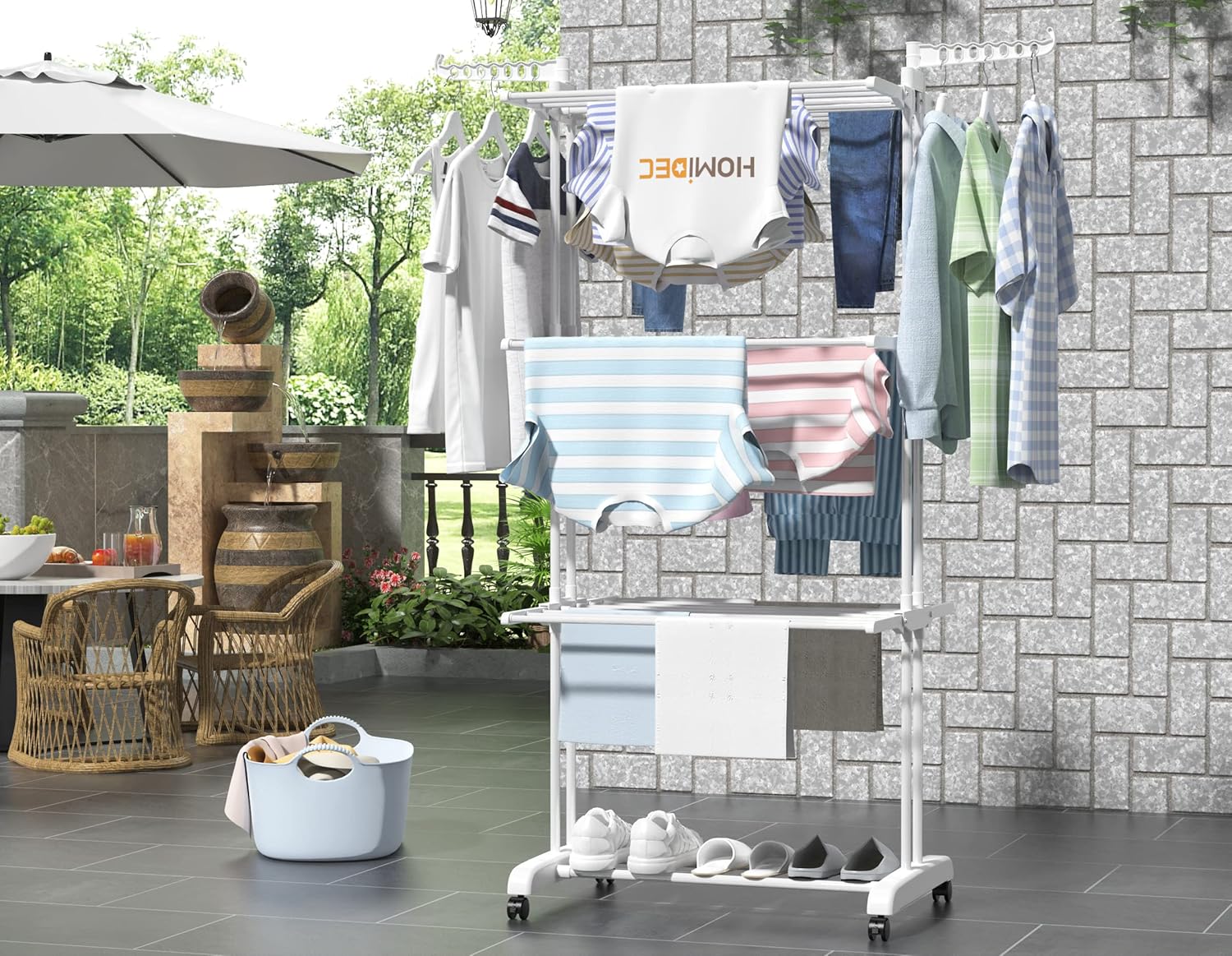 HOMIDEC Clothes Drying Rack, Large 4-Tier Foldable Drying Rack Clothing(67.7H x 19.7W x 30L Inches), Movable Drying Rack with 4 castors. Multifunctional Stainless Steel Laundry Drying Rack, White