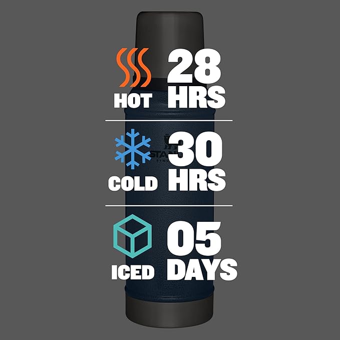 - KEEP IT HOT OR COLD: Our Stanley Classic Vacuum Bottle is made with superior insulation that keeps liquids (soup, coffee, tea) hot or cold drinks cool for up to 24 hours. It’s also made with BPA-free materials, keeping its contents safe to consume.