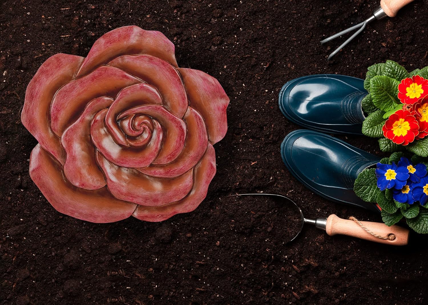 - FLORAL NATURE INSPIRED DESIGN – Brighten up your indoor and outdoor spaces with this beautiful rose blossom, shaped stepping stone. Dimensional design will add interest to your décor and express a playful personality.