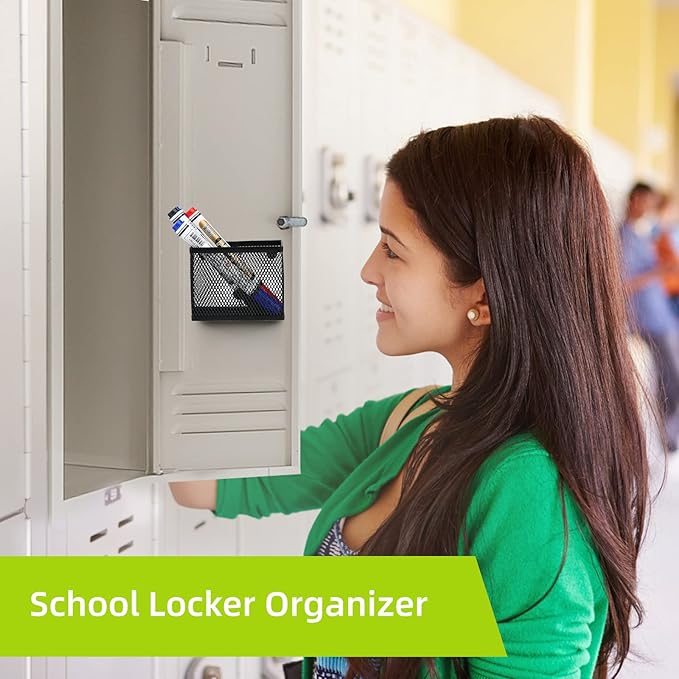 - [Magnetic Locker Organizer] Heavy-duty magnets on this three-compartment magnetic mesh locker basket help hold it in place no matter where it is. Three useful compartments are included in the large holder to help keep everything organized. It can be secured on a whiteboard, in a locker, or on any other magnetic surface due to nine strong magnets