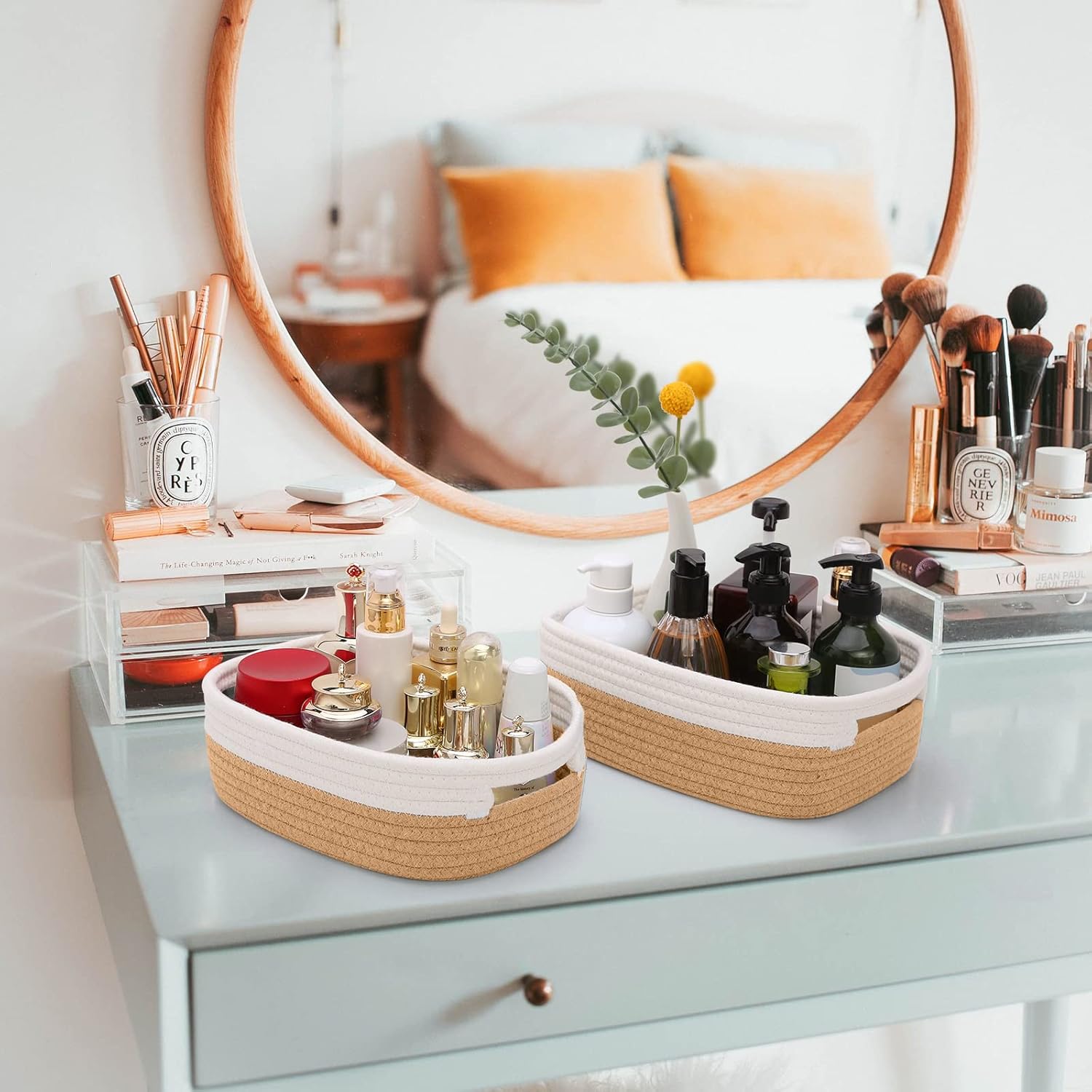 7 Piece Cotton Rope Woven Basket Set - Small Basket for Baby Nursery, Pets, Montessori, Dog & Cat Toy Boxes, Bathroom Organization Bins (White/Jute)