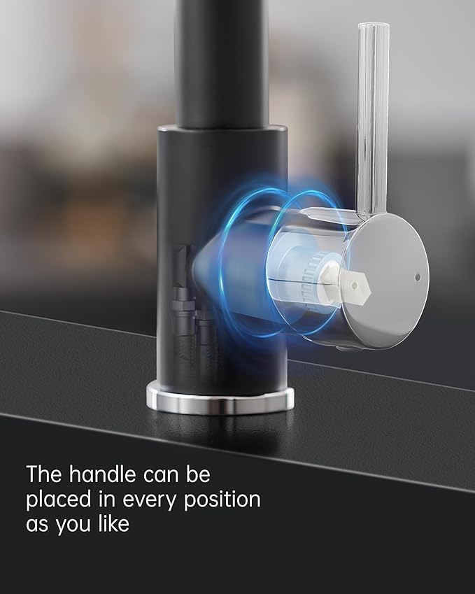 - TWO-TONE SPOT-FREE CHROME&BLACK FINISH kitchen faucet creates a sleek, sophisticated look with a subtle contrast; Available in multiple single-tone and two-tone finish options, so you can create a LOOK YOU LOVE !