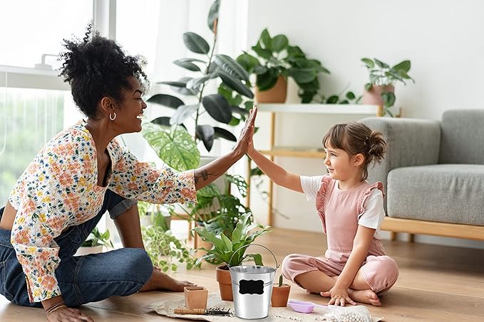 6 Metal Buckets With Chalkboard Stickers And Plastic Kitchen Scoops, Small Galvanized Buckets ,For Birthday, Wedding Party, Garden Planters , Party Supplies,Decorations ,5 Inch Tin Buckets - (tie 6)