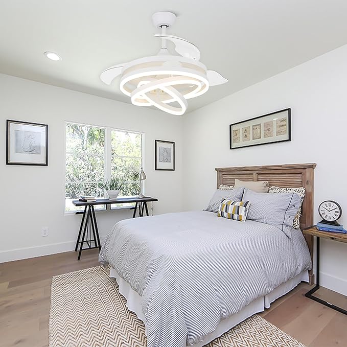 - 💡【Space-saving & Low-maintenance】Our fan's blades automatically retract internally, saving space and reducing the need for frequent cleaning. The integrated LED light provides ample energy-efficient illumination.