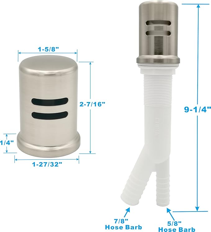 Dishwasher Air Gap Kits with Satin Nickel Dishwasher Air Gap Cover and Matching Escutcheon, Replacement air gap dishwasher, Solid Brass Air Gap Cap,Satin Nickel Finish