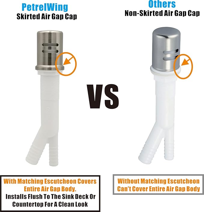 - CLASSIC DESIGN AND GOOK LOOKING : Skirted air gap cap covers with matching escutcheon covers entire air gap body and installs flush to the sink deck or countertop for a clean look, classic and sensible styling that complements any Home.