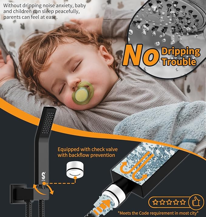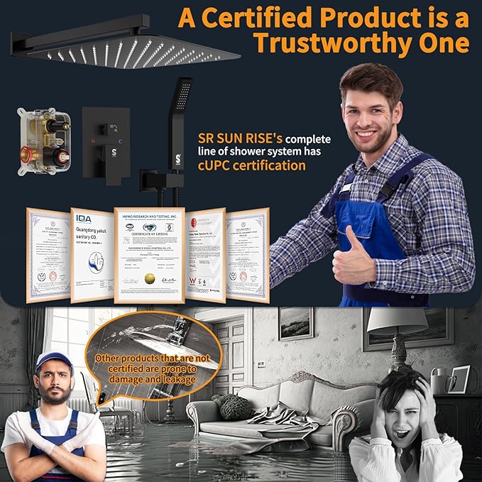- Reliable Support & Certified Safety: Backed by 24/7 customer support, this Rain Shower Head and Handle Set ensures a stress-free experience. It features a cUPC certified pressure balance valve with built-in check valves to monitor water pressure and prevent scalding, approved by the California Energy Commission for standard 1/2-inch US pipe connections.
