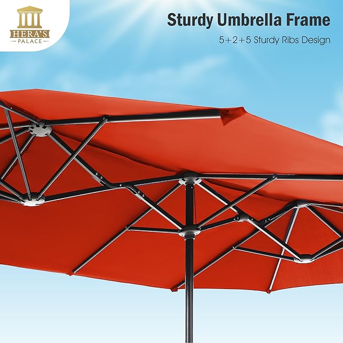 - 100% Polyester Fabric: The 13 ft rectangle patio umbrella is made of 100% polyester that can be waterproof and UV resistant, fade-resistant, long lasting and easy to clean