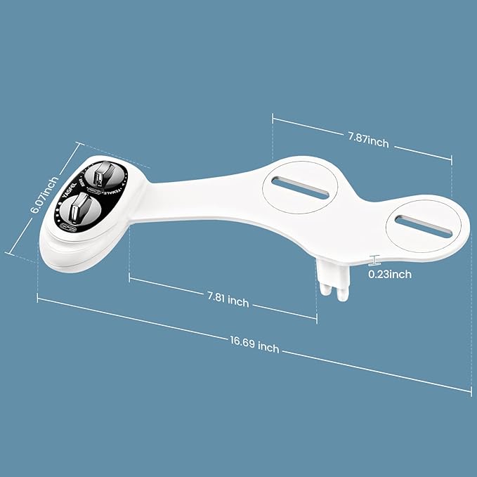 YASFEL Bidet Attachment for Toilet, Toilet Bidet Non-Electric Bidet Toilet Attachment Dual Nozzles for Frontal/Rear Wash, Adjustable Pressure Control (Black/White)