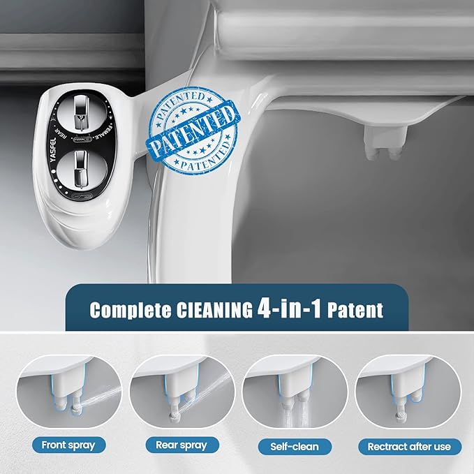 - With the US-patented 29846298 YASFEL Self-Cleaning Toilet Attachment, you'll get rid of the cookie-cutter and get a branded bidet attachment! Embrace life and enjoy bathroom time from now on.