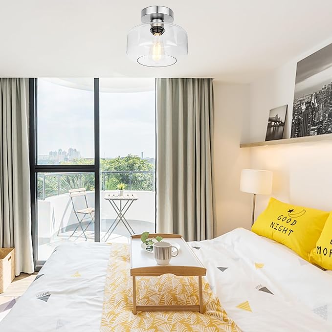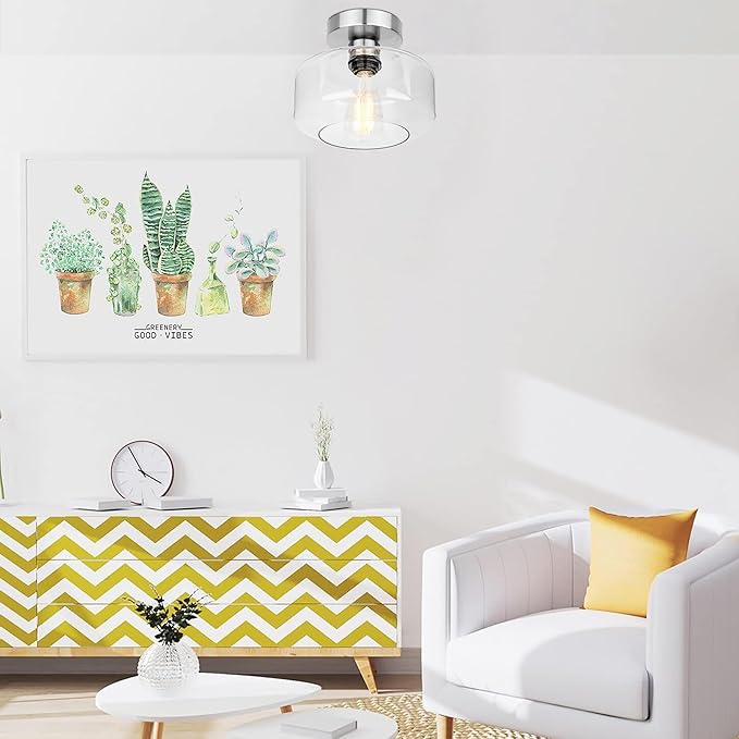 - Semi Flush mount Design& Vintage Style--- This ceiling light is perfect for vintage farmhouse and industrial decors. A silver base complements the clear glass and heightens the classic industrial look of this ceiling light, the clear glass casts a nice shadow on the ceiling, creating a romantic atmosphere in your home.
