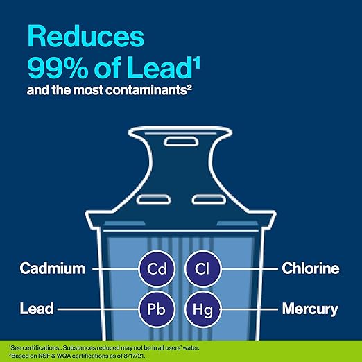 - Reduce 99% lead, Chlorine (taste and odor), Cadmium, Mercury, Benzene, Asbestos, and more*, while an electronic indicator makes filter reminders effortless