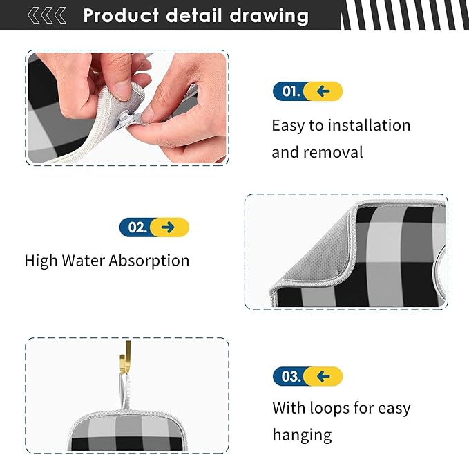 White and Black Buffalo Plaid Faucet Water Catcher Mat 2 Pack Classic Buffalo Check Drying Mat Absorbent Bathroom Faucet Handle Drip Catcher Tray Bar RV Kitchen Sink Splash Guard 23x5 Inches