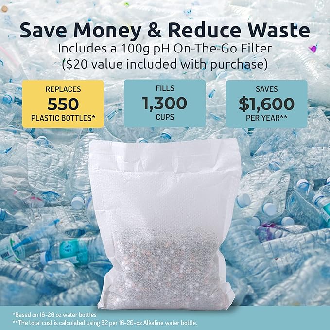 - LONG-LASTING FILTER CAPACITY - Each pH filter water pitcher can filter up to 1.9L of water at a time, ideal for home, office & outdoor use. Its on-the-go filter pouch filters up to 105 gal/400L of water total.