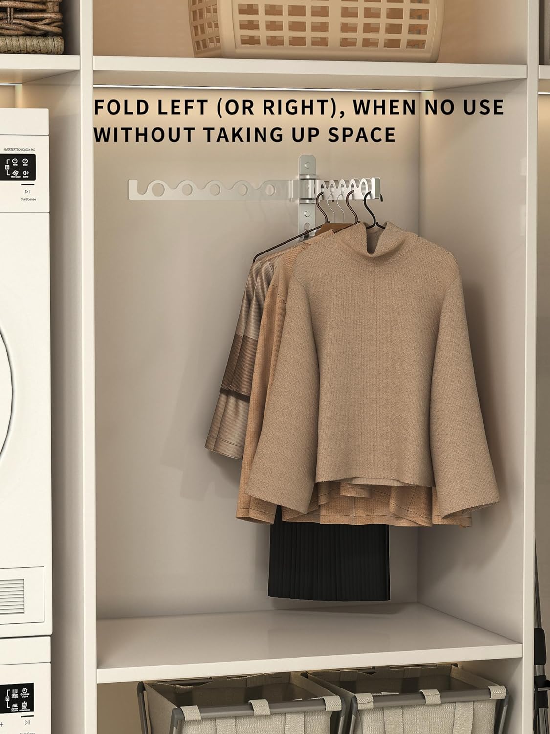 - 【MULTI-ANGLE ROTATION AND SPACE SAVING】Wall hanging hanger, can be installed in the bedroom, bedroom, kitchen or bathroom to increase storage space, when in use, turn the hanger down 90 degrees to hang clothes, when not in use, rotate the hanger back up or It can be rotated 180 degrees left and right to be attached to the wall, which does not take up space and can maximize the storage space