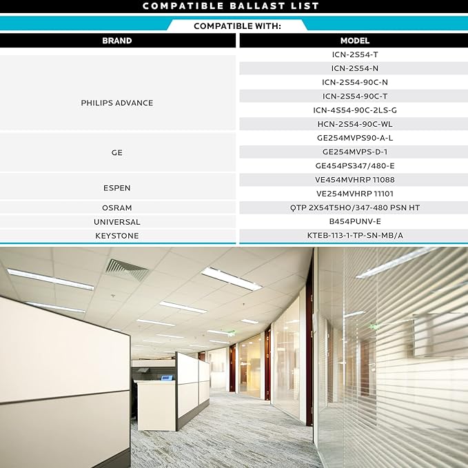 - Universal Compatibility – These T5 LED bulbs are designed for flexible installation, compatible with both existing ballast systems (refer to ballast list) and direct wire connections. Supports both single-end and dual-end power, operating at standard 120V or 277V.