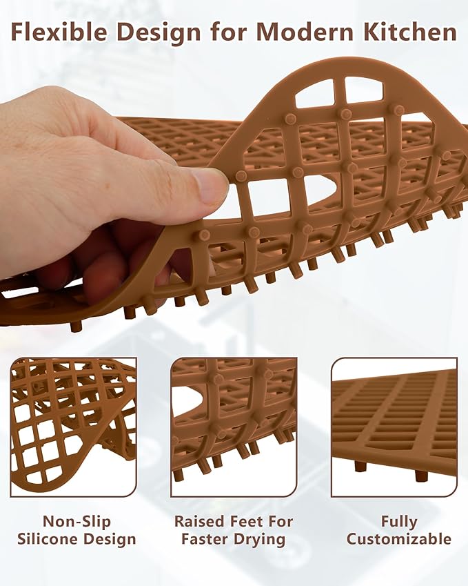 - Versatile Kitchen Helper - Seamlessly transition between using it as: an efficient drying rack for dishes, a heat-resistant pad for hot pots, a stable non-slip surface for cutting boards, or a protective counter mat during food prep.Despite its sturdy performance, it remains lightweight enough to move effortlessly between sink, counter, and stove.