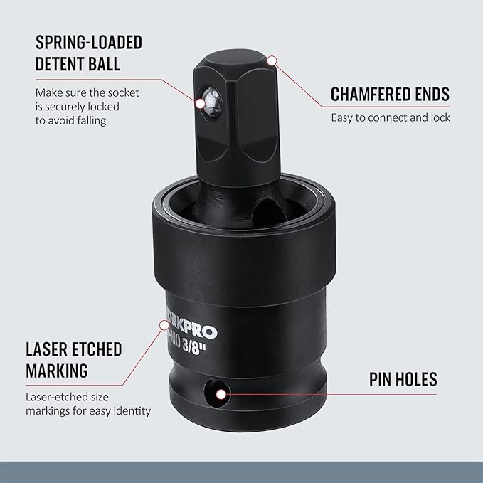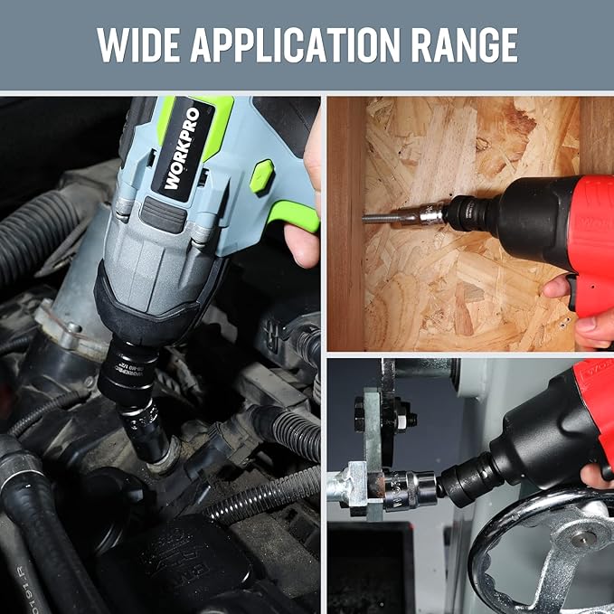 - Long-Lasting Use: WORKPRO Swivel Socket Set is constructed from drop-forged and heat-treated chrome-molybdenum steel for extreme durability and strength for impact operations, and corrosion-resistant black manganese phosphate finish, providing durability for manual use