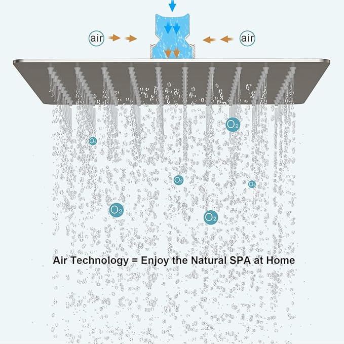 - Ultimate High Pressure Shower: Thanks to the ultra-thin design and Air Energy Technology of the rain shower, even in a low water pressure environment, when the water flows out after being squeezed through the ultra-small space, it can also achieve a high water pressure rain shower experience.