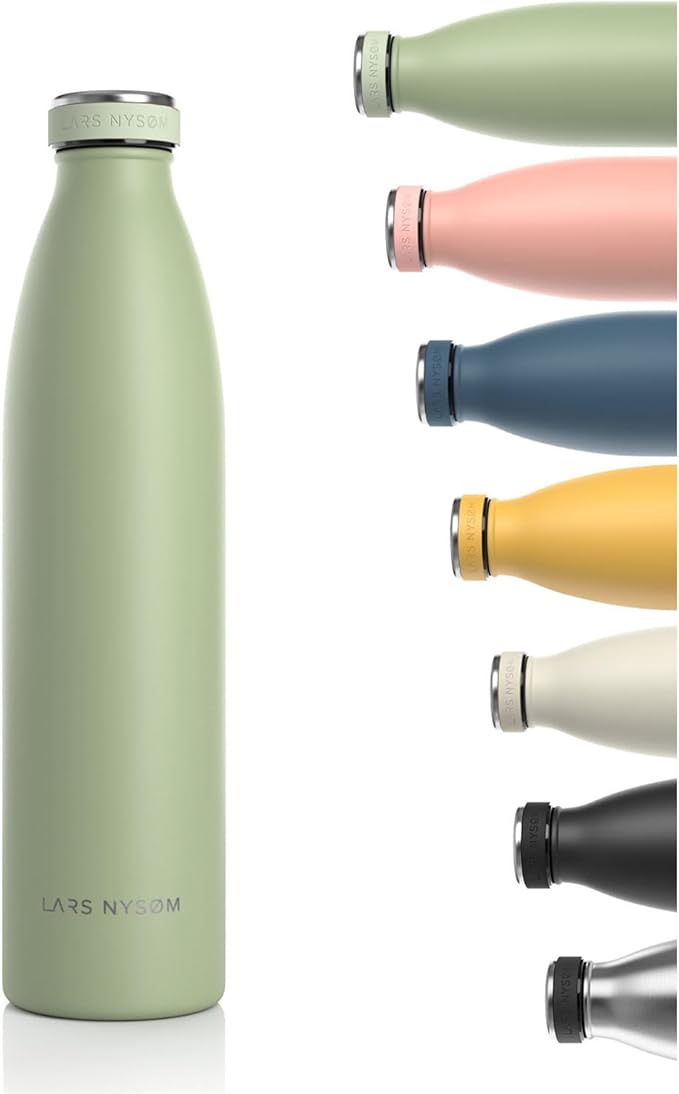 LARS NYSØM Stainless Steel Insulated Water Bottle 12oz 17oz 25oz 34oz 51oz | BPA-free Insulated Thermo Flask for Hot and Cold Beverages | Leakproof Drinking Bottle