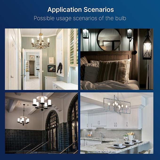 - Special Feature : 2700K Soft White, E12 Candelabra Base, Dimmable High Transparency, Dimmable, 60W Equivalent, Energy Efficient, Easy to Install Low Heat Output, No Buzzing and No Flicker 2700K Soft White, E12 Candelabra Base, Dimmable High Transparency, Dimmable, 60W Equivalent, Energy Efficient, Easy to Install Low Heat Output, No Buzzing and No Flicker