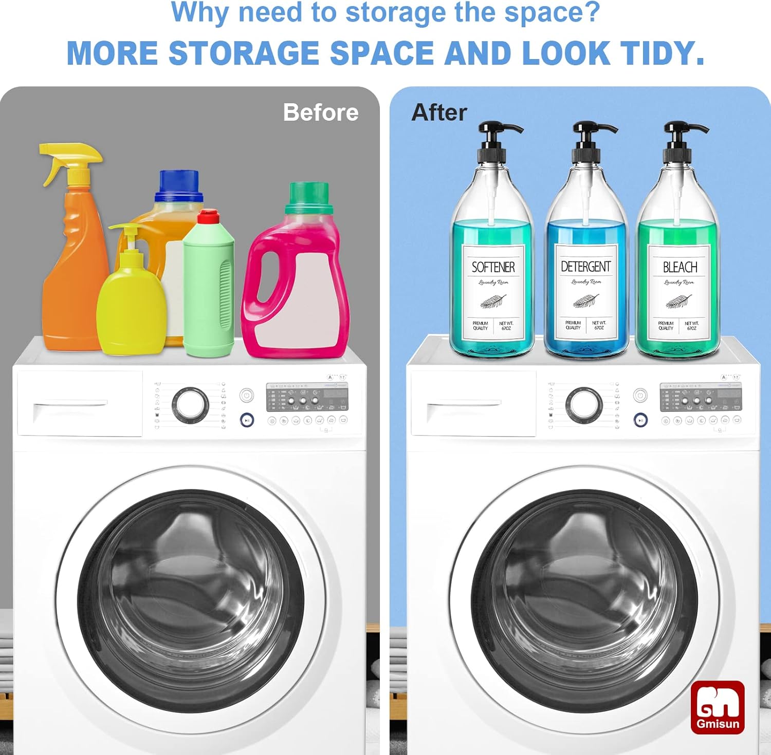 - 【Stylish Detergent Dispenser For Laundry room Organization】Say goodbye to your different colors and shapes of the laundry dispenser, Let’s decorate a tidy & stylish laundry room! Toss those old, mismatched bottles and put the laundry soap into these stylish refillable laundry soap dispenser, giving your laundry room a clean and modern look. Come out with 2 colors(white and black) pumps in each set, you can choose the color and then DIY the style you like, all go well with any laundry room decor.