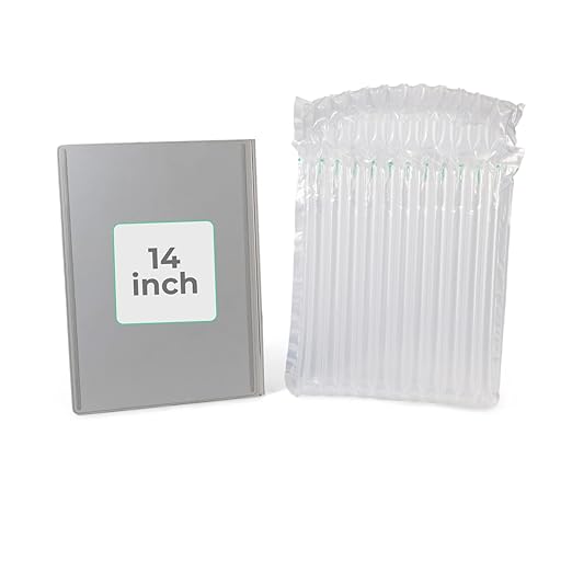 - 【CUSHIONING & VIBRATION DAMPING FOR LAPTOPS】IDL Packaging Inflated 14-inch Laptop Protective Bag is made of extra strong PE/PA. Pack of 1. This column airbag is 14.5 inches long, 9.5 inches wide, and 2 inches high on the outside; 14 inches long, 9 inches wide, and 1 inch high on the inside