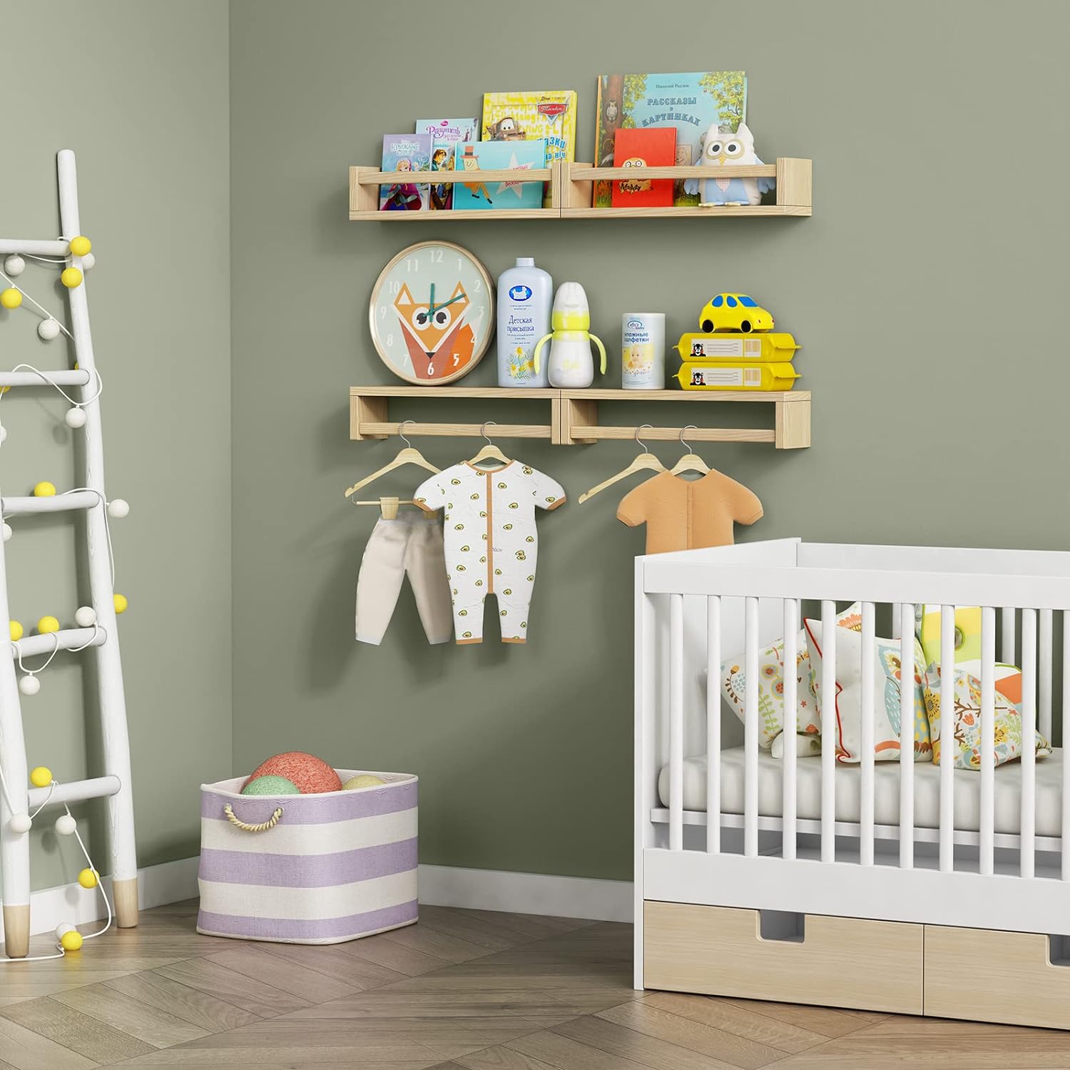 - [Great for Nursery and Kids Room] Mount these floating shelves on your nursery wall, Kids can stow books, toys, stuffed animals and games in wall shelving, where they’ll be off the floor and easy to reach.