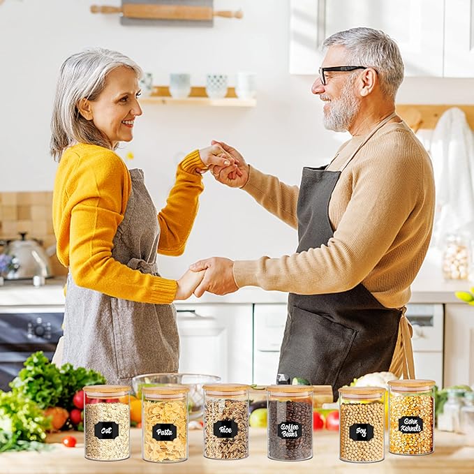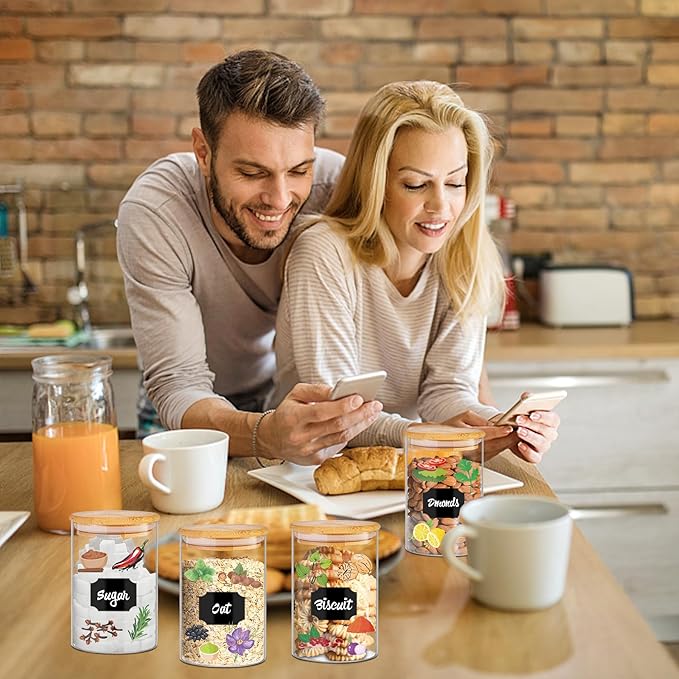 - 【Effortless Organization】Stay perfectly organized with 58 colorful labels included with these kitchen jars. The uniform airtight glass pantry storage containers set with bamboo lids stack neatly to maximize space - ideal for small kitchens storing flour, nuts or pet treats.