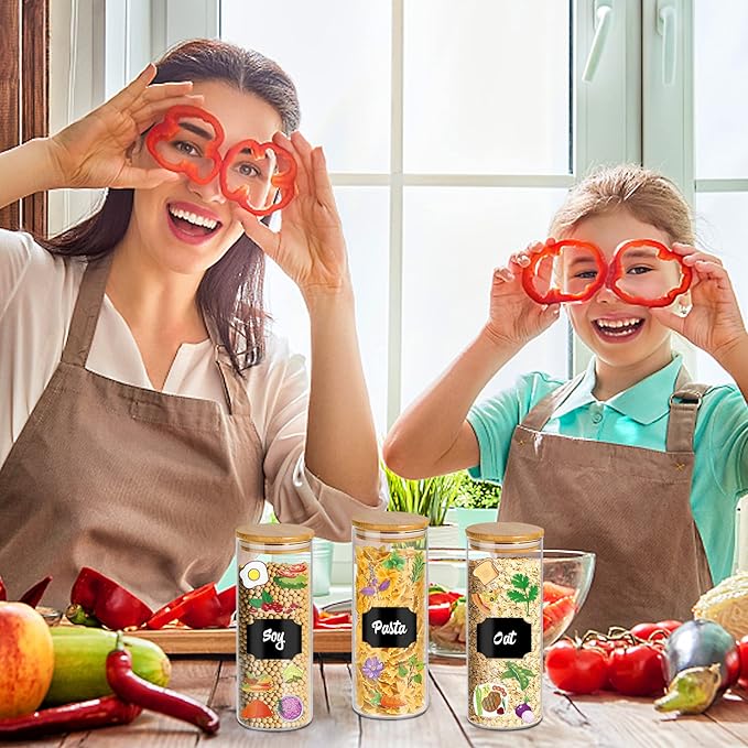 - 【Effortless Organization】Stay perfectly organized with 58 colorful labels included with these kitchen jars. The uniform airtight glass pantry storage containers set with bamboo lids stack neatly to maximize space - ideal for small kitchens storing flour, nuts or pet treats.