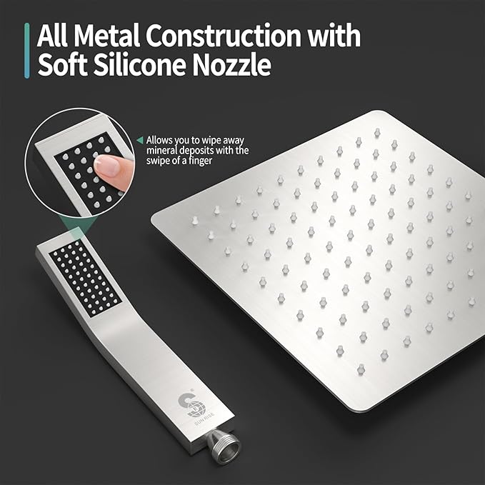 - Reliable Support & Certified Safety: Backed by 24/7 customer support, this Rain Shower Head and Handle Set ensures a stress-free experience. It features a cUPC certified pressure balance valve with built-in check valves to monitor water pressure and prevent scalding, approved by the California Energy Commission for standard 1/2-inch US pipe connections.
