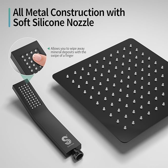 - Reliable Support & Certified Safety: Backed by 24/7 customer support, this Rain Shower Head and Handle Set ensures a stress-free experience. It features a cUPC certified pressure balance valve with built-in check valves to monitor water pressure and prevent scalding, approved by the California Energy Commission for standard 1/2-inch US pipe connections.