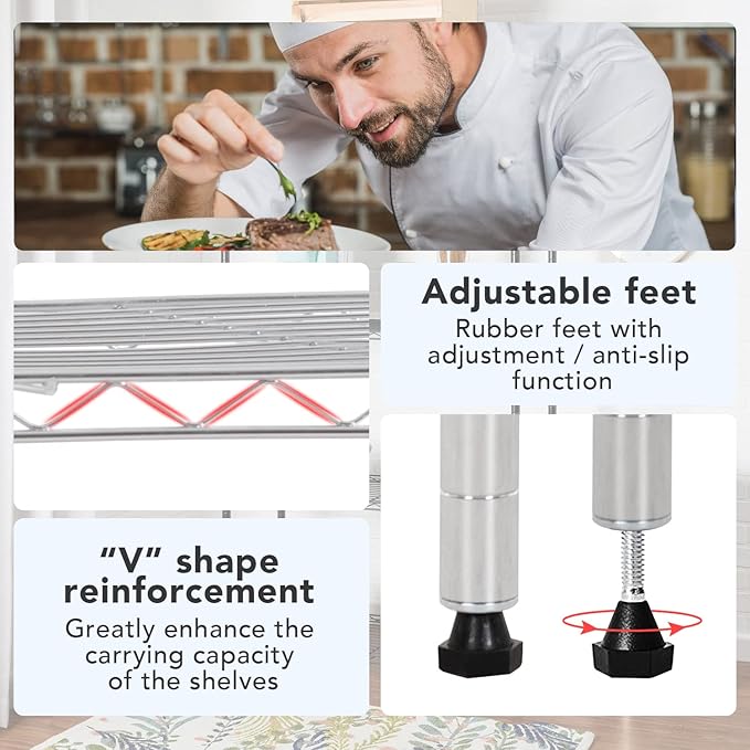 BestOffice 23Lx13.2Wx30.2H Adjustable Metal Storage Shelves 3-Tier Wire Shelving Unit Organizer Wire Rack 450Lbs Capacity for Small Places Kitchen Garage,Chrome