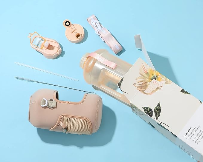 H2O Capsule 2.2L Half Gallon Water Bottle with Storage Sleeve and Removable Straw – BPA Free Large Reusable Drink Container with Handle - Big Sports Jug, 2.2 Liter (74 Ounce), Sandy Beige