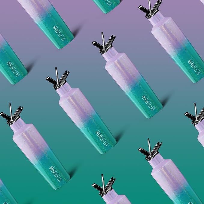 BrüMate ReHydration Mini Kids Water Bottle | 100% Leakproof Insulated Water Bottle for Kids with Straw | Stainless Steel Water Canteen | Perfect Kids Water Bottle for School | 16oz (Glitter Mermaid)