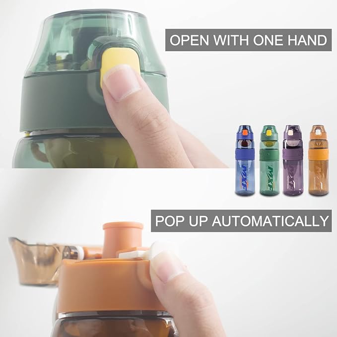 - Robust and Leak Proof: One hand operation button,one key to open the sports bottle,Pop up lid with silicone attachment; Dust and leak proof; It won't leak even when it's in a bag