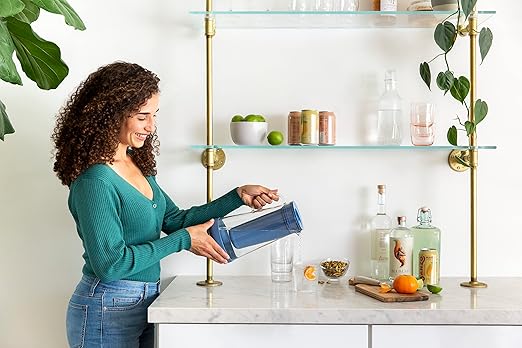LifeStraw Home– Water Filter Pitcher, 7-Cup, Glass with Silicone Base, Stormy Blue, for Everyday Protection Against Bacteria, parasites, microplastics, Lead, Mercury, PFAS and a Variety of Chemicals