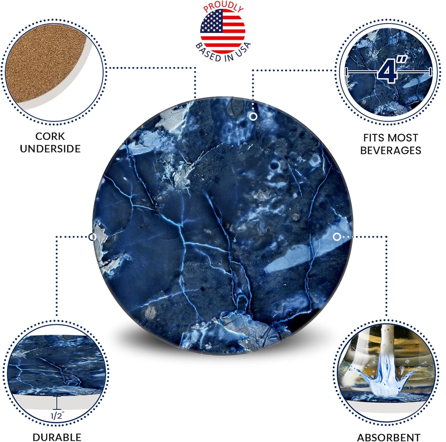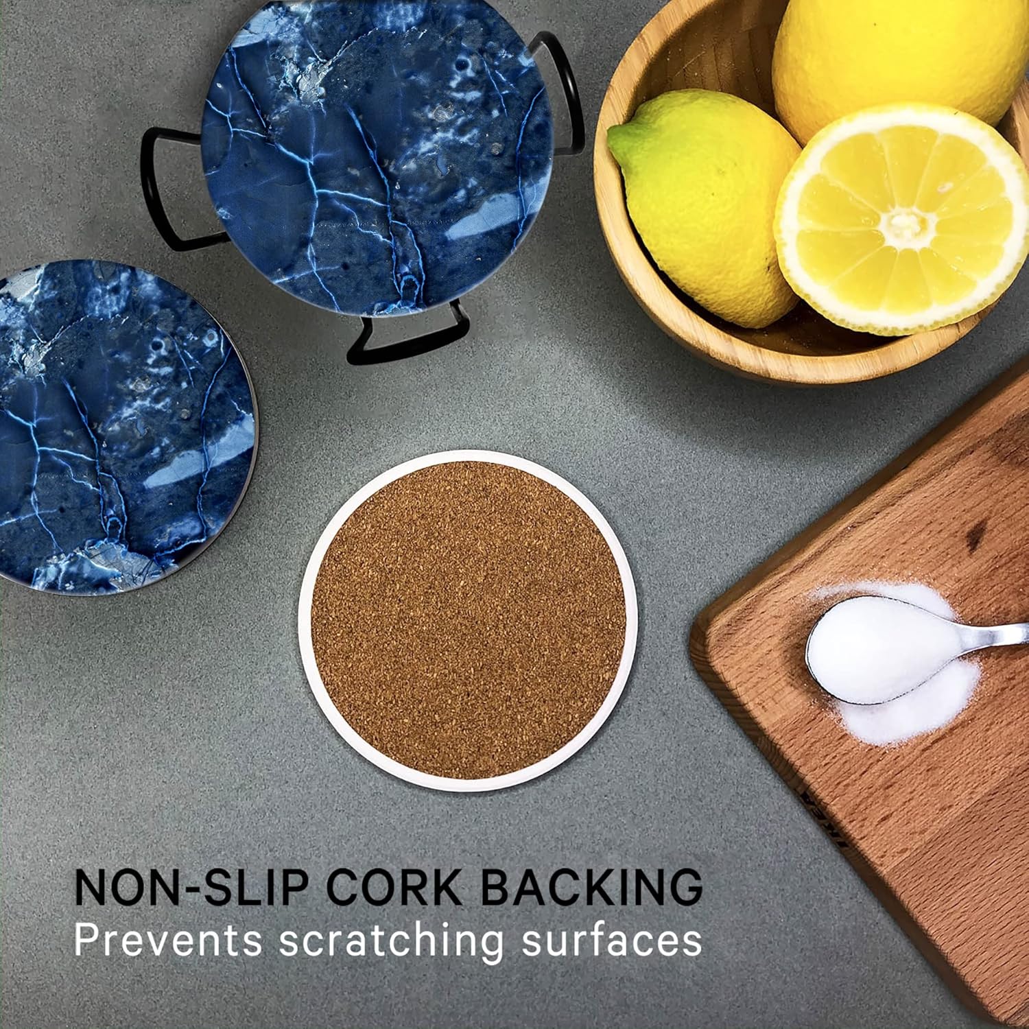 Emerson Coasters for Drinks Absorbent Set of 6 with Holder – Marble Style Coasters – Coasters for Drinks – Drink Coasters for Coffee Table – 100% Ceramic Stone Non Slip – Heavy Duty (Maze)
