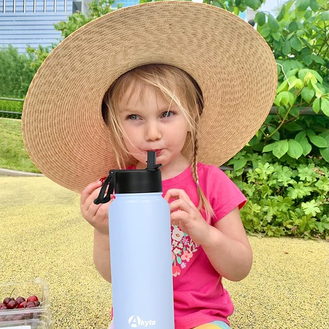 - 2. Water bottle with Straw / Spout lids: Akyta Water Bottles, free comes with 2 lids, straw lid ,and spout lid, to serve all your needs, Leak proof, Perfectly Vacuum sealed insulated Water Bottles,Double walled body, Designed with the unique thermo technology,to keep your favorite drinks cold or hot for up to 24hours