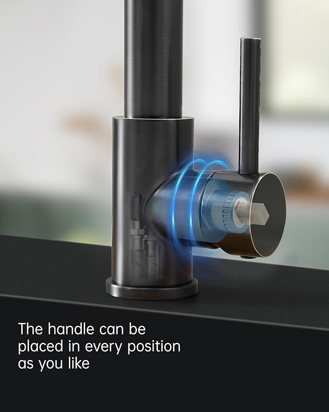 - EASY TO USE: We’ve equipped this pull out spray kitchen faucet with a single handle that conveniently controls both water volume and temperature. You’ll love the smooth swivel action, stress-free pull down, and secure docking of the faucet pull out sprayer when not in use. The ingenuity and convenience of the sprayer lock design allow you to utilize one hand to do while when you are washing.