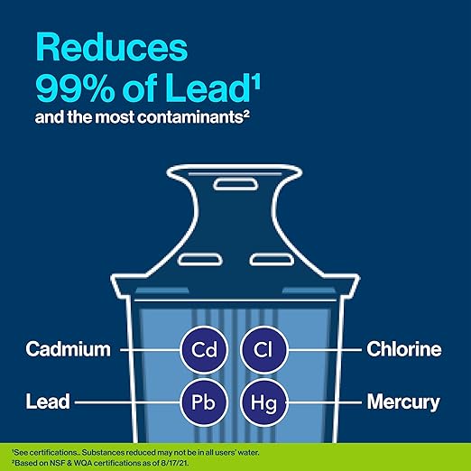 - Reduce 99% lead; Chlorine (taste and odor); Cadmium, Mercury, Benzene, Asbestos, and more; while an electronic indicator makes filter reminders effortless