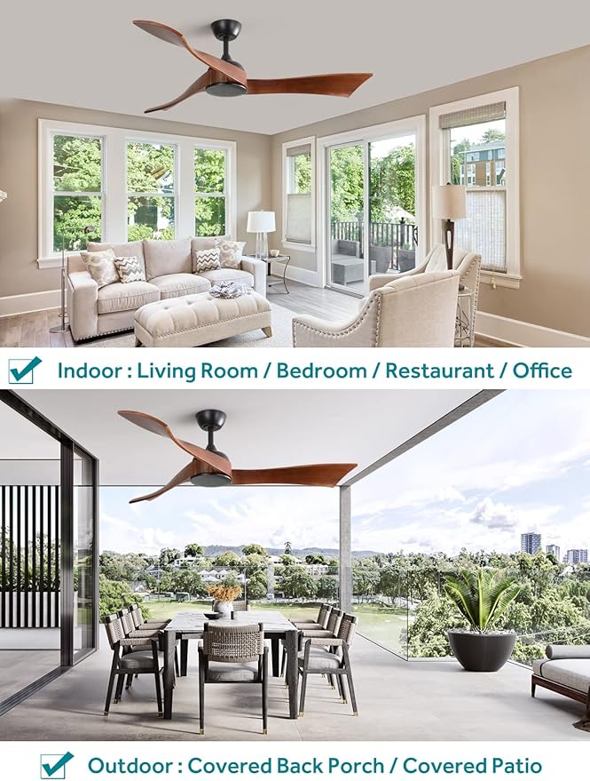 - Indoor Ceiling Fan: The propeller ceiling fan combines with black finish and walnut wood blades, great for any indoor and covered outdoor space, living room, bedroom, child room, covered patio and covered porch.