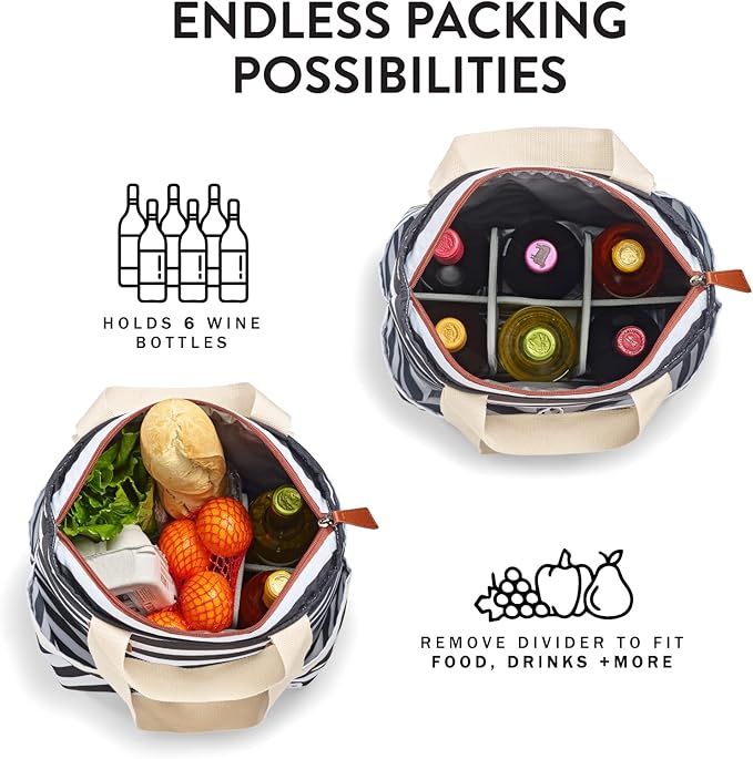 - INCLUDES REMOVABLE DIVIDER: The divider in this travel cooler bag keeps food and drinks organized. Easy to customize, this insulated cooler bag can fit anything you want! The divider is easy to store along with the collapsible cooler bag.