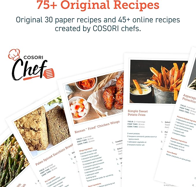 - Helpful Accessories: Includes 1 oven rack, 1 food tray, 1 fry basket, 1 crumb tray, and a recipe book. Search B0B92TPHTV, B0B93CMST3, and B0B8ZNVRX3 for accessories.
