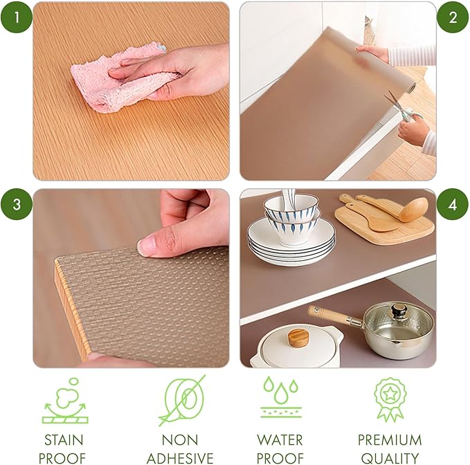 - WASHABLE: You can easily wash any stains and this shelf liner doesn't leave any stain marks. You can have your shelf hygiene at its finest. Protect your cabinets with the quality and the features of our cabinet liner!