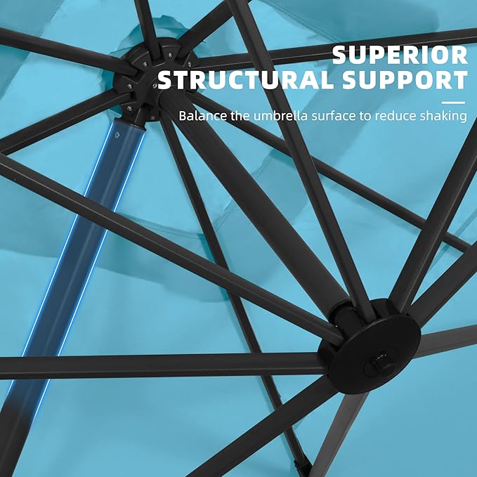 PURPLE LEAF 10' X 13' Patio Umbrella Outdoor Cantilever Rectangle Umbrella Aluminum Offset Umbrella with 360-degree Rotation for Garden Deck Pool Patio, Turquoise Blue